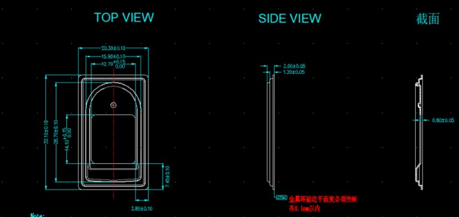 TLK3A 系列是電容式一體化指紋模組,TLK3AA01 使用的是鉆石鐵框。