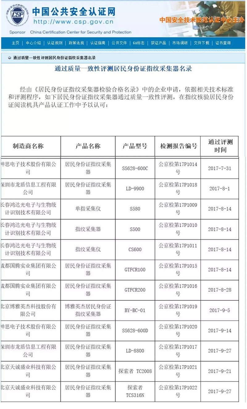 2017-09-01 查看內(nèi)容繼7月24日公布居民身份證指紋采集器合格名錄以來,又有采集器廠商陸續(xù)采用...